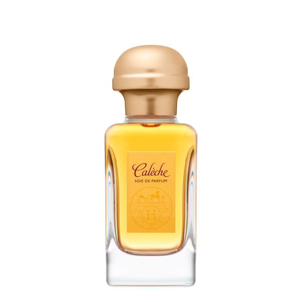 Composé par Guy Robert en 1961, Calèche est le premier féminin de la maison. C'est un floral boisé chypré, d'une grande féminité, dont le nom fait écho à l'attelage emblématique d'Hermès. Calèche est un roman qui brille par la beauté de ses matières premières, de la gaieté des agrumes à la modernité des notes aldéhydées, du cœur floral brodé d'ylang-ylang, de rose et de jasmin, au sillage boisé, chypré, souligné par la noblesse de l'iris.