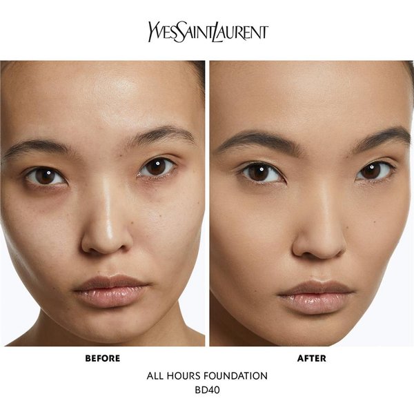 Préparez-vous à des jours et des nuits sans fin avec Encre de Peau All Hours, le 1er fond de teint couvrant tenue jour et nuit Yves Saint Laurent Beauté. Assurez le jour, vivez la nuit avec un teint mat sans défaut jusqu'au petit matin ! 24 heures de tenue sans compromis : sans retouche et sans transfert, ce fond de teint longue tenue résiste à l'eau et à la chaleur tout en restant confortable même au cours d'une journée intense. Haute couvrance sans effet masque : une forte concentration de pigments à la fois fins et souples permet une couvrance parfaite et uniforme toujours naturelle. Matité contrôlée longue durée : cette formule non grasse assure un teint frais sans brillance et réduit l'apparence des pores tout au long de la journée. Protection contre les agressions extérieures : grâce à son indice de protection solaire et son complexe soin, ce fond de teint actif garde la peau fraîche et lisse. Convient à tous les types de peaux, même les plus sensibles. Testé sous contrôle dermatologique - Non comédogène.