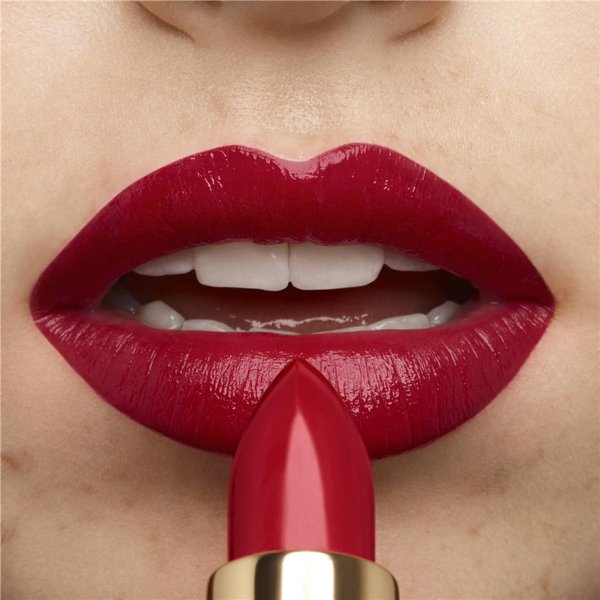 ""Trois façons de l'appliquer, trois résultats coutures : - Pour un résultat précis et sophistiqué : appliquez le rouge à lèvres au pinceau. - Pour un résultat discret et raffiné : prélevez la couleur du bout des doigts puis venez tapoter la texture sur