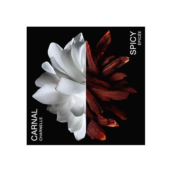 Tubéreuse charnelle et Jasmin opulent sont attisés par un accord rouge flamboyant de Feuille de Piment, Orange Sanguine et Gingembre, et signent un sillage floral épicé boisé.