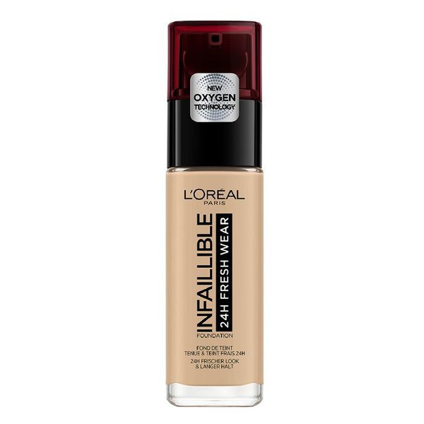 Une finition impeccable toute la journée ? L'Infaillible 24H Stay Fresh de L'Oréal est un fond de teint qui relève sans effort toutes les épreuves de la vie quotidienne ! Sa formule longue tenue à finition mate et à technologie innovante à base d'oxygène est légère et confortable et offre une couvrance élevée, pour un teint parfait tout au long de la journée. Waterproof, ce fond de teint contient un indice de protection solaire SPF 25 et ne fait pas de taches.