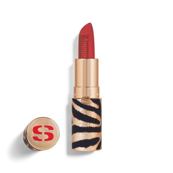 Phyto-Rouge Velvet se présente dans un écrin zébré noir et or au fini brossé mat et renferme un raisin facetté pour une application facile et précise.