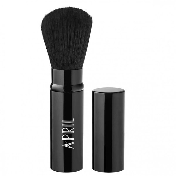 Un pinceau compact facilement transportable, conçu pour appliquer les poudres de teint et fards à joues.