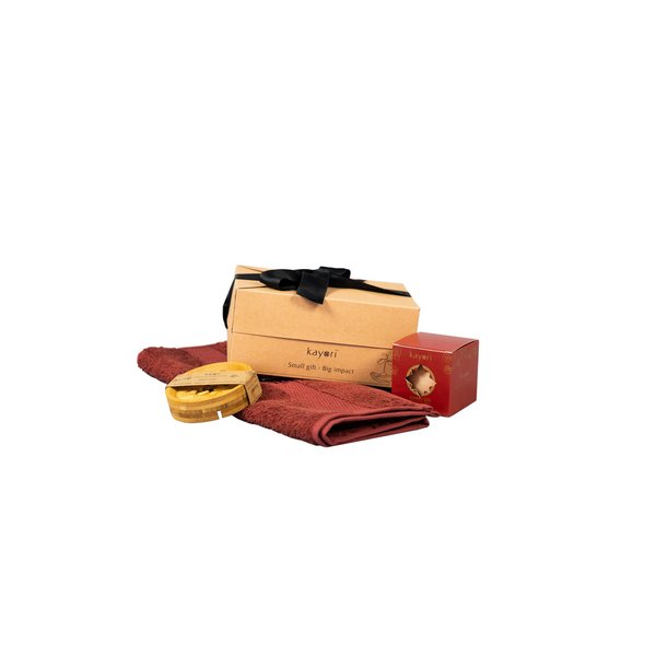 La gamme Kohaku se caractérise par un parfum oriental doux à base d'ambre. Le parfum combine le parfum puissant mais chaud de l'ambre avec des notes florales douces, cette combinaison crée un parfum apaisant qui vous permet de vous concentrer. Dans la spiritualité séculaire, on croit que l'ambre apporte équilibre et patience et aide à prendre des décisions. Le parfum Kohaku est donc un parfum qui vous aidera à traverser les jours importants ! Ce coffret comprend un délicieux savon sous la forme d'une boule relaxante, idéale pour se laver le corps grâce à sa forme ronde très pratique. La balle relaxante est composée d'ingrédients 100% naturels. En outre, ce coffret cadeau contient une jolie serviette de toilette de 30x50cm en coton 100% biologique, certifié GOTS. L'ensemble est complété par un magnifique porte-savon fabriqué en 100% bambou. Au milieu du porte-savon se trouve une découpe qui permet à l'humidité de s'écouler. Un véritable accroche-regard pour votre salle de bains ! Les produits Kayori ne contiennent ni PEG ni SLS, ce qui donne à votre peau une sensation de souplesse et d'équilibre. Les produits Kayori sont 100% naturels et donc agréables pour votre peau.