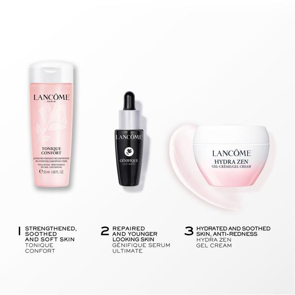 • Contient : Tonique Confort 50ml, Génifique Ultimate Serum 10ml, Hydra Zen Gel Crème 15ml