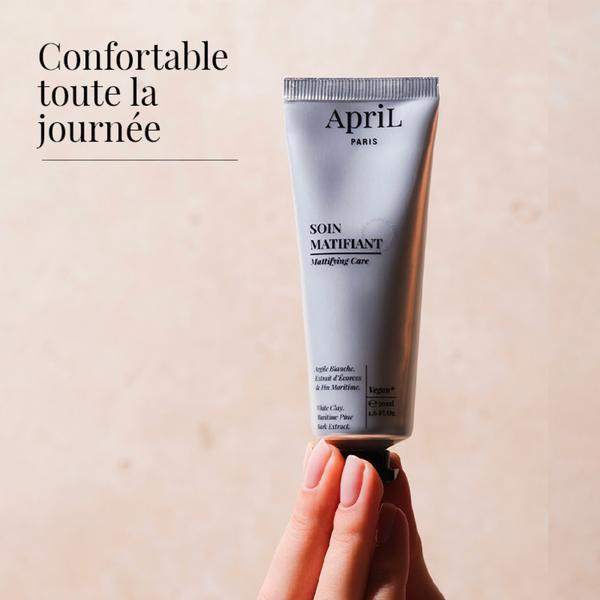| ApriL Paris rend la beauté naturelle accessible à tous. Conçue pour répondre aux besoins spécifiques de chacun(e), cette nouvelle gamme de soins visage s’intègre parfaitement dans des routines efficaces pour tous les types de peau. Fabriqués au cœur des Pyrénées, ces soins végans sont formulés sans ingrédient controversé (phénoxyéthanol, sulfate, parabène ou silicone). L’essentiel du soin pour votre peau, tout simplement ! SOIN MATIFIANT Finies les brillances grâce à ce soin, composé à 96% d’ingrédients d’origine naturelle, qui matifie le teint. Ingrédients actifs : Extrait d’Écorces de Pin Maritime + Argile Blanche. Résultat : une action sur les cellules cutanées pour visiblement réduire l'excès de sébum, homogénéiser et matifier les peaux mixtes à grasses. Détail des actifs : ÉCORCES DE PIN MARITIME : Antioxydant, Unifie le teint, Apaisant, Réequilibrant, Sébo-régulateur ARGILE BLANCHE : Absorption sébum, Purifiant, Matifiant |