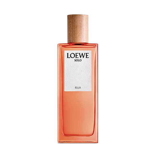 LOEWE Solo Ella EDP est encapsulé dans un flacon en verre translucide dans une teinte orange vibrante.